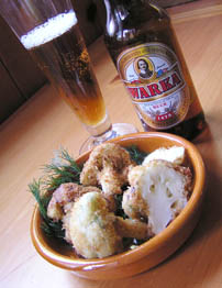 fresh fritters made with Warka lager, shown in my kitchen at left